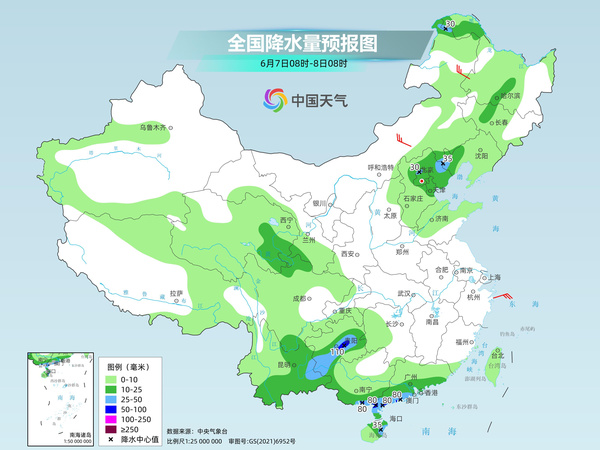 中央气象台预计,今天,内蒙古东北部、黑龙江北部、辽宁西部、华北中北部、青海东部、川西高原北部、西南地区东南部、华南南部等地部分地区有中到大雨,其中,贵州中部、广东西南部等地部分地区有暴雨或大暴雨。